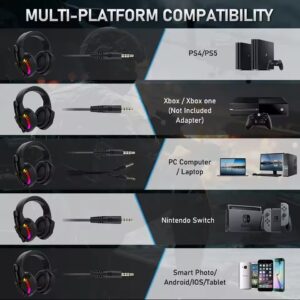 MAMBASNAKE CY907 RGB Gaming Headset, 5.1 Channel Stereo Surround Sound, 3.5mm Wired LED Over-Ear Comfort Headphone