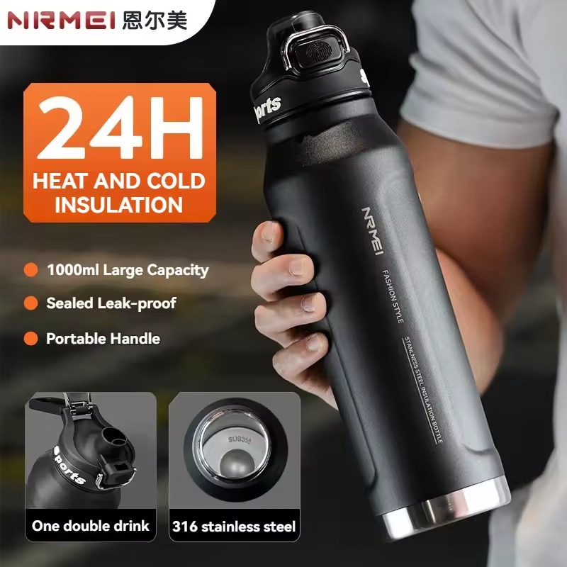 1L Thermos Water Bottle Stainless Steel Vacuum Flasks Keep Cold Hot Water Coffee bottles Portable Sport Gym Kettles With Straw
